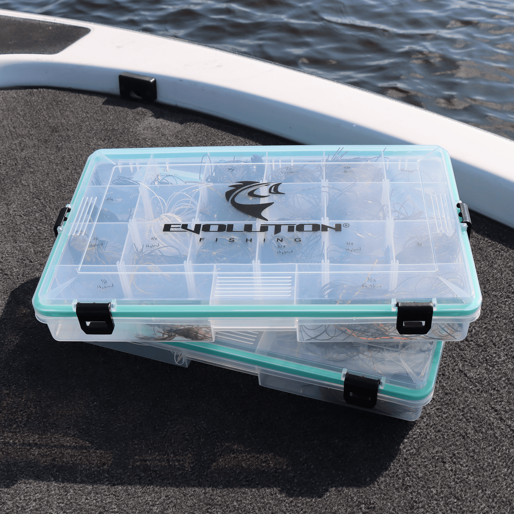 Experience the Evolution Fishing 3700 4-Latch Waterproof Tackle Trays. Developed with an emphasis on an oversized gasket, these trays are a trustworthy waterproof solution. The 4 rugged latches create a secure closure that compresses down its waterproof gasket ensuring water stays out. Utilizing a lightweight PP material, the 4-Latch trays float even when stored with tackle ensuring a small slip up doesn't ruin your day out on the water. Embodying the design and features anglers need, the 4-Latch Waterproof trays are the solution for long-term tackle storage.