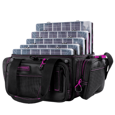 With its open top feature and extremely rugged wear-resistant 1680D construction, the Drift Series Topless Horizontal Tackle Bags deliver the quality and functionality that Evolution Fishing is known for. These Drift Series Tackle Bags have an innovative large mouth, open top feature that provides quick and easy access to all your trays. Slide your trays in horizontally with this version of the tackle bag. The integrated tie down Y-Strap will secure your trays in the bag, and in case of stormy weather, these bags are equipped with an integrated rain fly that you can zip up and store away when not in use. With 3 large exterior storage pockets and 4 rubber mesh slip pockets, you’ll have plenty of room to store all your accessories. It’s also equipped with a plier holster, side pocket line spool feed, and a non-slip, waterproof bottom with integrated drainage grommets. Transporting these tackle bags will be a breeze with the adjustable, removable shoulder strap and the padded top carry handle. With the capacity to hold up to 5 tackle trays, it’s more than capable of holding all your fishing essentials. Each tackle bag will include 5 matching color Drift Series Tackle Trays.